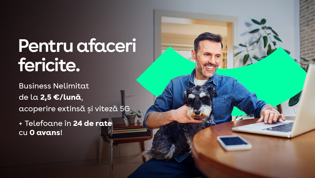 (3) Până la 5.000 de minute lunar, în rețelele fixe și mobile naționale. Vezi aici mai multe caracteristici ale abonamentului Business Nelimitat.